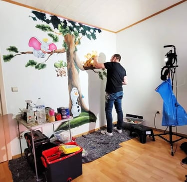 Een muurschildering is één-op-één maatwerk – geen standaard poster of print. Ze weerspiegelt jouw persoonlijkheid, stijl of verhaal. Of het nu gaat om een kinderkamer, woonkamer of bedrijfsmuur, het resultaat is iets dat niemand anders heeft.