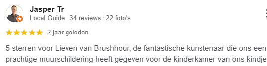 Bij elk project luister ik aandachtig naar jouw idee en vertaal dat naar een persoonlijk en uniek ontwerp. Geen enkele muurschildering is dezelfde: elke muur krijgt zijn eigen verhaal, sfeer en karakter. Zo ontstaat een echt kunstwerk op maat, dat perfect past bij jouw ruimte en stijl.