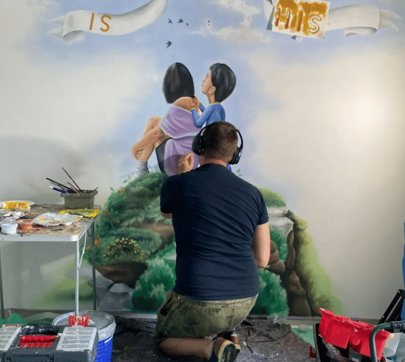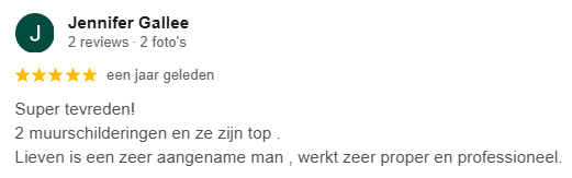 Ik ben Lieven Barbier, 44 jaar jong, en al bezig met tekenen en schilderen sinds voor ik kon schrijven. Wat ooit begon als een hobby, groeide uit tot mijn grootste passie. Na twintig jaar als ambtenaar besloot ik in 2019 mijn hart te volgen en van mijn creatieve talent mijn beroep te maken. Sindsdien maak ik professionele muurschilderingen op maat voor zowel particulieren als ondernemingen.